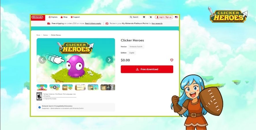 The official Clicker Heroes Nintendo Switch game release happened on October 2, 2025. The game became instantly available as a free digital download on the Nintendo eShop, making it accessible to a wide range of players. At the moment, there is no physical edition available.